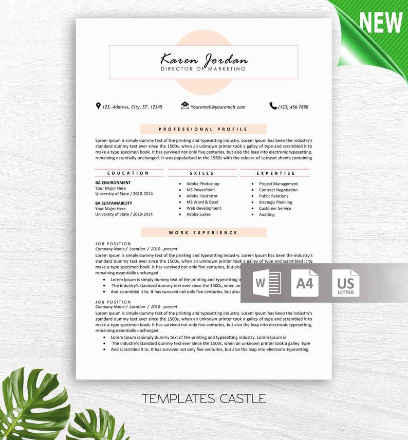 Resume Template Cv Professional Modern Creative Ms Word Free Etsy
